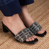 An elegant way to make a statement is to wear heels with shiny stone work shoes.